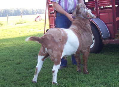 outer leg muscle and a tail that stays tight to his rump. He has what we like to say a 'hog butt'. He sired our daughters Grand Champion Wether at the 2008